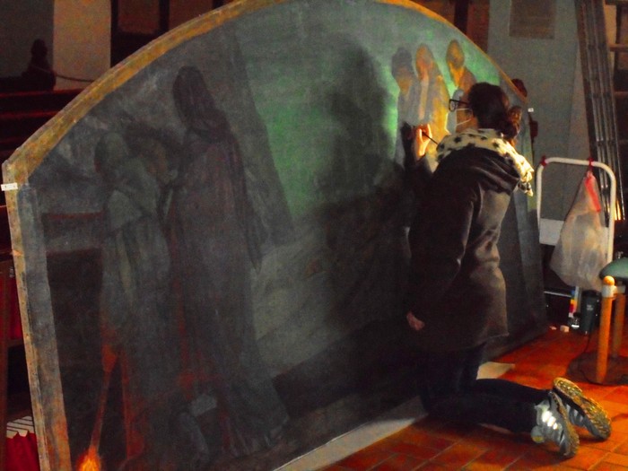 In der coronabedingt geschlossenen Christuskirche wurden die Gemälde von Rudolf Schäfer 2021 zum zweiten Male restauriert.