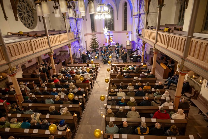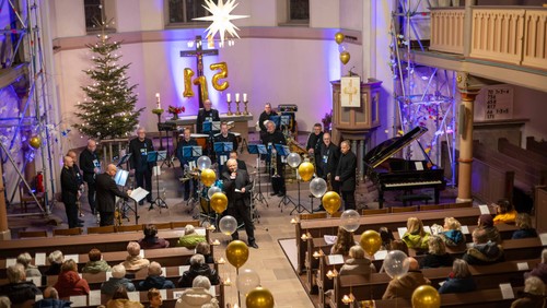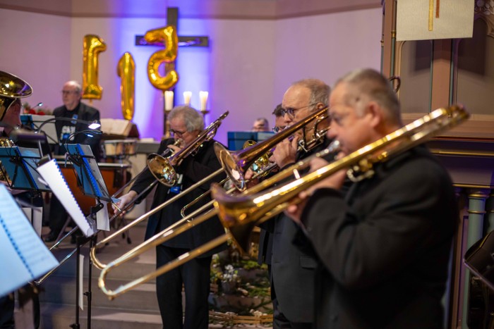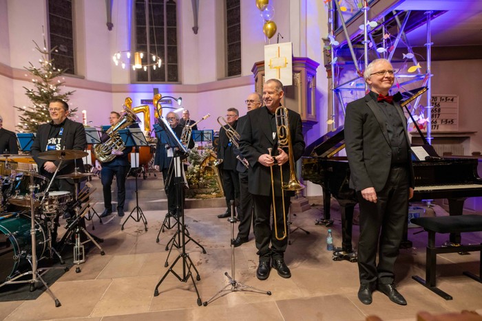 Bläser, Schlagzeug, Pauke, Gitarre, Triangel und ab und an Andreas Fröhling an Orgel oder Klavier, ein musikalisch gelungener Einstand zum Konzertjubiläum und zum Jahresanfang.